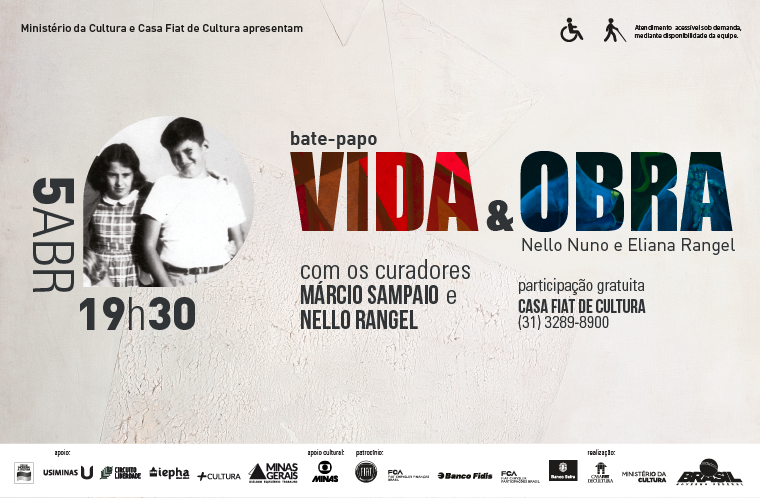 No dia 5 de abril, das 19h30 às 21h, será realizado o Bate-papo “Vida e Obra de Nello Nuno e Eliana Rangel”, com os curadores Márcio Sampaio e Nello Rangel, na Casa Fiat de Cultura. A entrada é gratuita, com espaço sujeito à lotação (200 lugares) e distribuição de senhas a partir das 18h30.