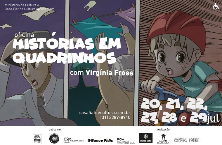 A exposição Inarredáveis sai das paredes da Casa Fiat de Cultura e ganha vida na Oficina Histórias em Quadrinhos. Venha participar com Virgínia Fróes, uma das quadrinistas da exposição, para aprender as técnicas das artes sequenciais utilizando-se da narrativa para construção de personagens e histórias.