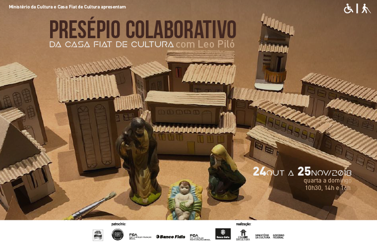 A 4ª edição do Presépio Colaborativo da Casa Fiat de Cultura, com curadoria do artista plástico Leo Piló, irá homenagear o tradicional Presépio do Pipiripau, projeto de Raimundo Machado que está no Museu de História Natural e Jardim Botânico da UFMG. Participe e traga caixas de remédio vazias que serão a base para a construção de um presépio reciclado e feito a várias mãos.