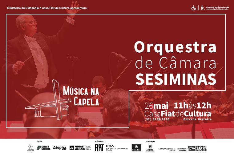 A Orquestra de Câmara SESIMINAS, com regência do maestro Marco Antônio Drumond, fará um passeio musical que começa com o clássico chorinho de Ernesto Nazareth passando por Mozart, Bach, J.Brahms e Villa-Lobos. Na segunda parte do concerto serão apresentadas canções de Duke Ellington, Chico Buarque, do grupo mineiro Skank, finalizando com Tico-tico no fubá de Zequinha de Abreu. Espaço sujeito à lotação (80 lugares).