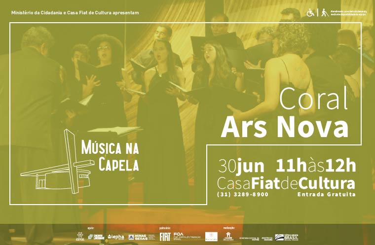 O Coral Ars Nova, com regência de Lincoln Andrade, irá apresentar o concerto: “De 2 em 2: um breve passeio pela história da música coral”. No repertório, serão apresentadas duplas de obras que passam por estilos de diversos períodos e escolas (Renascença, Barroco, Clássico, Romântico, Impressionista), músicas dos séculos XX e XXI, além de canções brasileiras. Espaço sujeito a lotação (80 lugares).