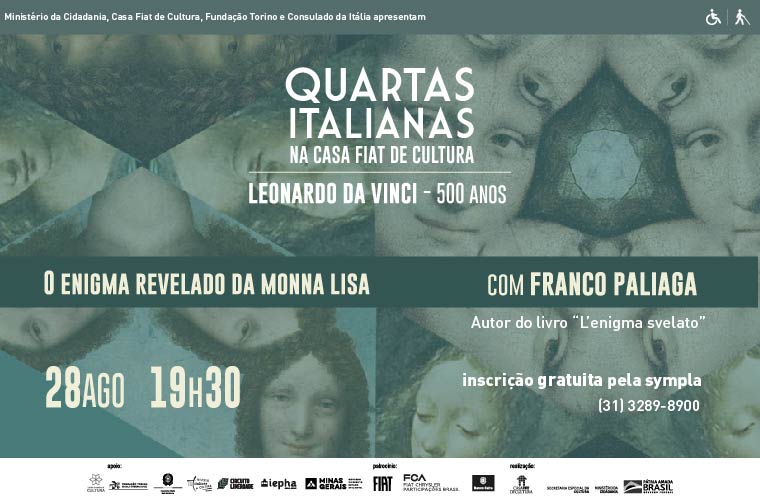 Franco Paliaga, professor de história da arte, graduado e especializado pelo Departamento de História da Arte na Universidade de Pisa (IT), irá falar sobre sua linha de pesquisa e compartilhar os resultados que deram origem ao seu último livro lançado, “L’enigma svelato”. O autor busca a identificação de quem é a mulher retratada no famoso quadro e revela diversas histórias a partir do elo encontrado em três importantes obras de Leonardo da Vinci – Monna Lisa (1503), A Virgem das Rochas (1483-1486) e São João Batista (1513). Espaço sujeito a lotação (200 pessoas), com tradução simultânea.