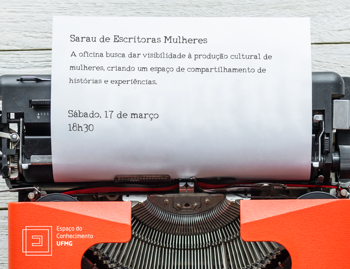 | Sarau Mulheres Escritoras Quando: Sábado, 17 de março, às 18h30 Participação: gratuita mediante retirada de bilhete na recepção Classificação: livre Onde: Espaço do Conhecimento UFMG – Praça da Liberdade, 700, Funcionários, BH |