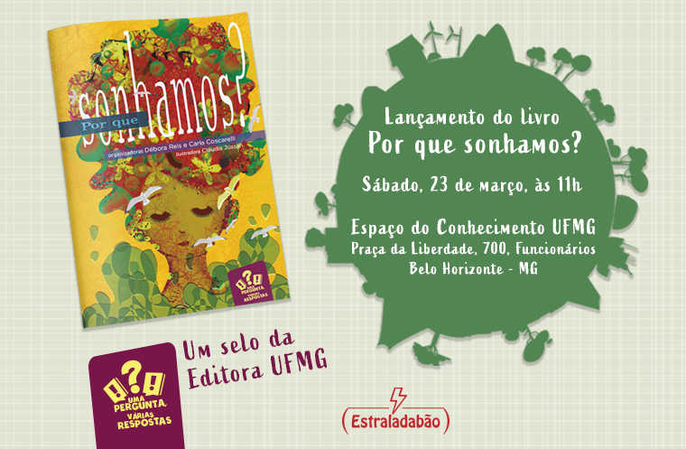 O selo infanto-juvenil Estraladabão, criado em 2018, lança o livro Por que sonhamos?, organizado pelas professoras Débora Reis, do Instituto de Ciências Biológica da UFMG, e Carla Coscarelli, professora da Faculdade de Letras da mesma universidade. Os textos são de Marcelo Xavier, Patrícia Martins, Vera Casa Nova, Renata Aspis, Mauro Condé, Jefferson Machado e Leonor Bezerra Guerra.O lançamento é às 11h e conta com show musical e sessão de autógrafos. O preço do livro é R$ 33,00.