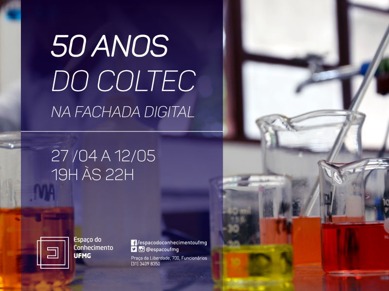 O Colégio Técnico da UFMG (Coltec) comemora os 50 anos da sua fundação em abril. Para comemorar a data, o Espaço do Conhecimento UFMG exibe fotografias que contam um pouco da história da instituição, referência em educação no estado. A intervenção acontece de 27 de abril a 10 de maio, das 19h às 22h.