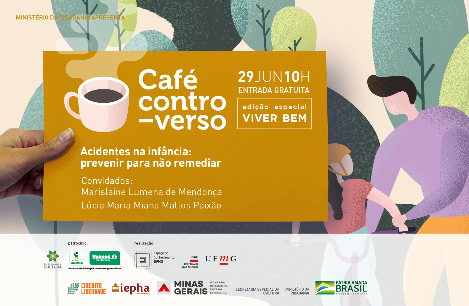 Para falar sobre o tema Acidentes na infância: prevenir para não remediar, duas especialistas da área médica vão debater as principais causas desses imprevistos, medidas de proteção, a importância da prevenção e o papel das instituições no controle do problema. Estarão presentes a médica especialista em pediatria e epidemiologia Marislaine Lumena de Mendonça e a médica epidemiologista da Prefeitura Municipal de Belo Horizonte Lúcia Maria Miana Mattos Paixão.