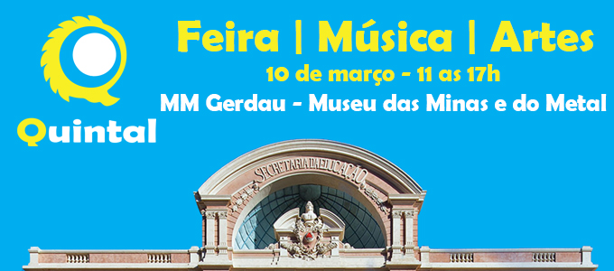 No dia 10 de março, das 11h às 17h, o MM Gerdau – Museu das Minas e do Metal recebe a segunda edição da Feira Quintal, uma das mais completas e abrangentes feiras culturais de Belo Horizonte, cuja curadoria reúne vários expositores de quatro diferentes áreas da economia criativa: música, publicações independentes, moda e gastronomia (produtos orgânicos).