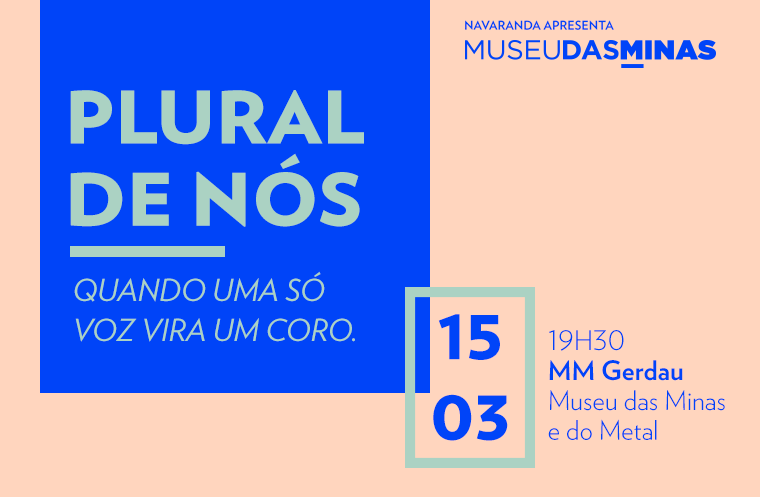 Em comemoração ao Dia Internacional da Mulher, celebrado em 8 de março, o MM Gerdau – Museu das Minas e do Metal realiza, em parceria com a Navaranda, a segunda edição do Museu das Minas, com o tema “Plural de Nós: quando uma só voz vira um coro”, trazendo bate-papo no dia 15 de março, às 19h30, e exposição de fotografias da ação “Vem com as outras”, do coletivo Diálogos [Anôminos], de 15 de março a 01 de abril, que pode ser vista no horário de funcionamento do Museu.